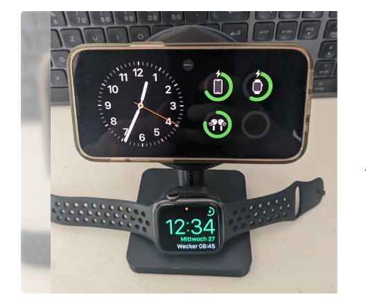 Magsafe iPhone and Apple Watch Stand, angled 30°