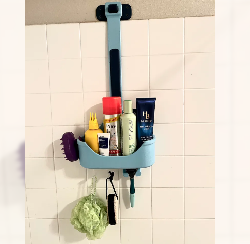 / Wall Mounted Shower Caddy with Accessory Hooks